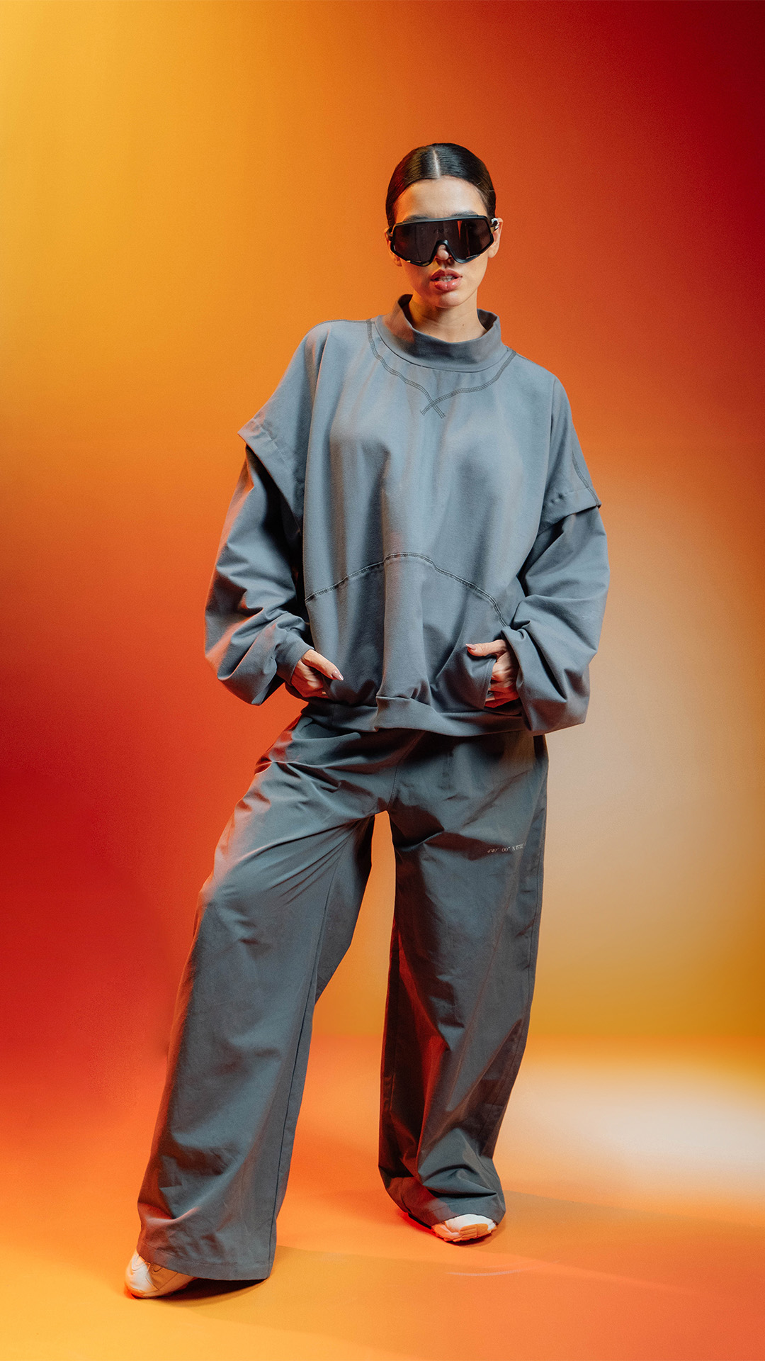 Hoodie oversized en 100% algodón con costuras visibles y un bolsillo tipo canguro en el delantero.